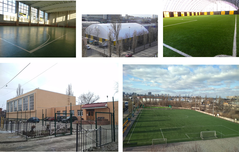Спортспоруди ДЮСШ «Атлет»: 02099 м. Київ, Дарницький район, вулиця Зрошувальна, 4-А ( 1. спортивний зал 36х18, 2. футбольний майданчик 20х40 (покриття – штучна трава), 3. футбольне поле 103х68 (покриття – штучна трава), 4. критий футбольний майданчик (манеж) 50х30 (покриття – штучна трава)