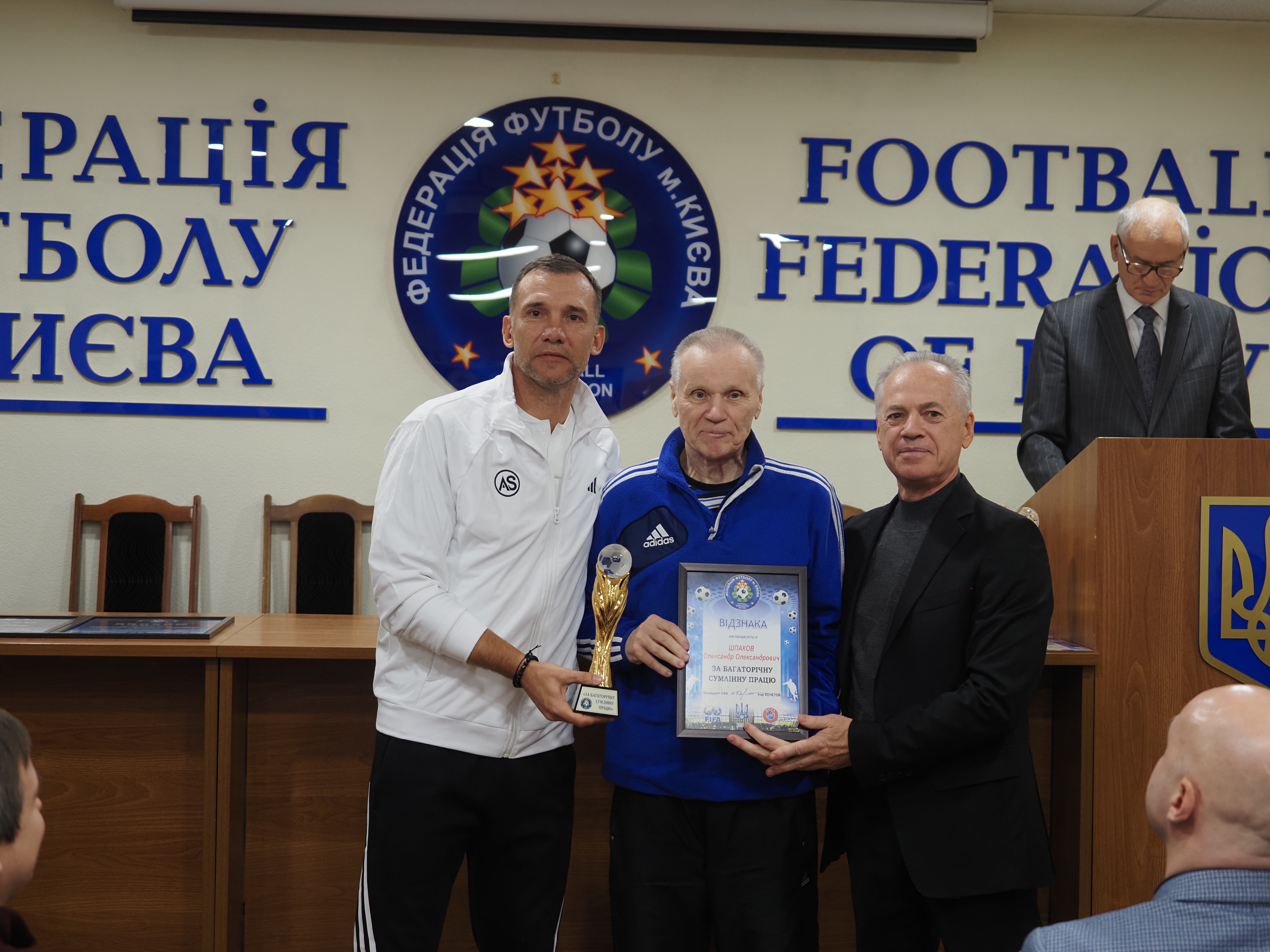 Естафету поколінь засвідчила присутність у залі першого тренера Андрія Миколайовича, Олександра Шпакова. Він згодом віддав належне своєму учню: «Символічно, що киянин, вихованець київського футболу повертає столицю до футбольної сім'ї!», «Київська асоціація футболу повертає собі належне й гідне місце, - зазначив очільник УАФ. – Наразі вона там де по праву має бути!»
